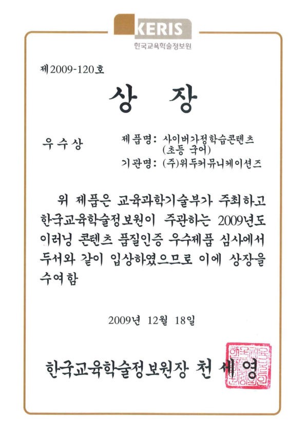 이러닝 콘텐츠 품질 인증 우수 심사 페이지 정보 작성자 WeDu 댓글 0건 조회 4,920회 작성일 19-05-30 19:32 본문 2009-12-18 우수상 제 2009-120호 이러닝 콘텐츠 품질 인증 우수 심사 한국교육학술정보원장 천세영 List Previous이러닝 기업의 수요 창출과 품질 향상 19.05.30 Next제 8회 디지털 이노베이션 대상 19.05.30