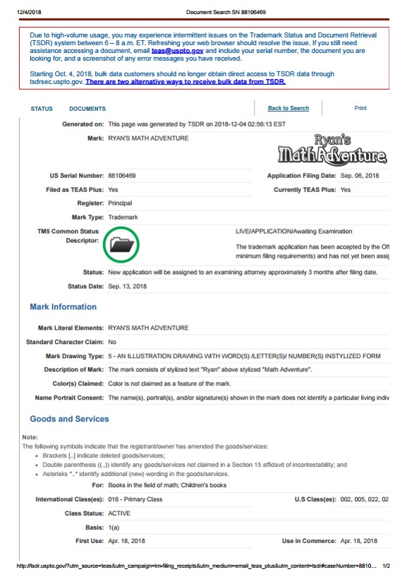 [미국/상표] RYAN'S MATH ADVENTURE
